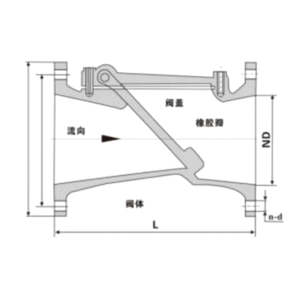 Injap ini terutamanya digunakan di saluran pam saluran paip dalam bekalan air dan sistem saliran, perlindungan kebakaran, penghawa dingin, elektrik, pembinaan, makanan, rawatan air, pentadbiran perbandaran, pembinaan kapal, dan saluran paip lain untuk menghalang aliran belakang media. Oleh kerana cincin pengedap produk ini mengamalkan reka bentuk yang cenderung, masa penutupan adalah pendek, yang dapat mengurangkan tekanan tukul air. Cakera injap diperbuat daripada getah tahan minyak nitril dan plat keluli yang ditekan pada suhu tinggi. Ia mempunyai rintangan hakisan yang baik dan prestasi pengedap. Struktur produk adalah mudah, dan penyelenggaraan, pembaikan, dan pengangkutan mudah.