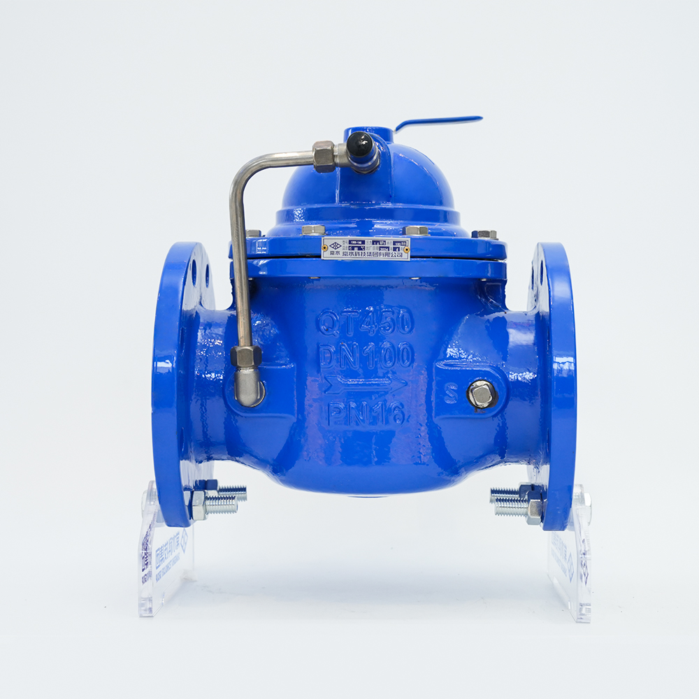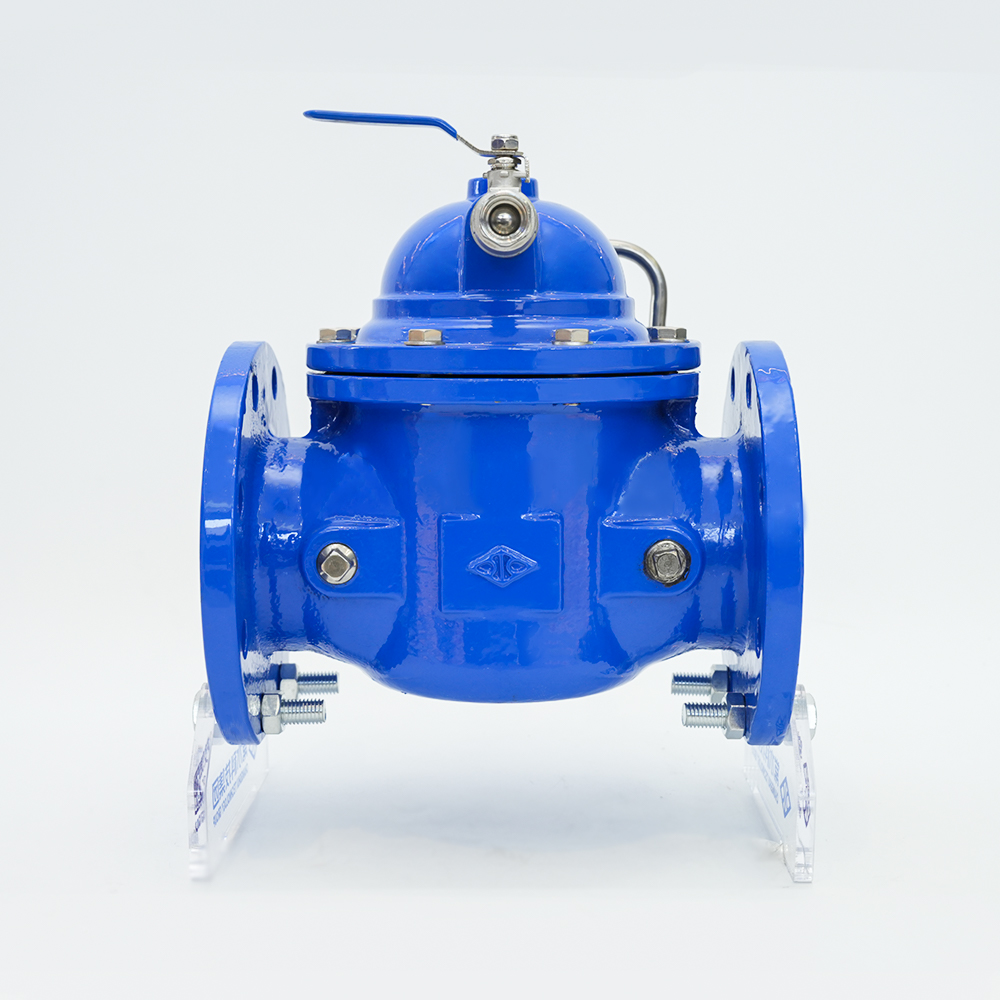 Injap kawalan hidraulik adalah injap yang dikawal oleh tekanan air. Ia terdiri daripada injap utama dan saluran yang dilampirkan, injap perintis, injap jarum, injap bola, dan tolok tekanan. Bergantung pada tujuan, fungsi, dan tempat penggunaan, ia boleh berubah menjadi injap terapung kawalan jauh, injap pengurangan tekanan, injap pemeriksaan yang lambat, injap kawalan aliran, injap pelega tekanan, injap kawalan elektrik hidraulik, dan lain-lain. Prinsip kerja mereka adalah sama. Mereka dikuasakan oleh perbezaan tekanan SP antara hulu dan hiliran dan dikawal oleh injap perintis supaya diafragma (omboh) beroperasi secara hidraulik secara berbeza dan sepenuhnya diselaraskan secara automatik oleh hidraulik. Cakera injap utama terbuka sepenuhnya atau ditutup sepenuhnya atau dalam keadaan terkawal. Apabila air tekanan memasuki ruang kawalan di atas diafragma (omboh) dilepaskan ke atmosfera atau kawasan tekanan rendah hiliran, nilai tekanan yang bertindak di bahagian bawah cakera injap dan di bawah diafragma adalah lebih besar daripada nilai tekanan di atas, jadi cakera injap utama ditolak untuk sepenuhnya membuka kedudukan; Apabila air tekanan memasuki ruang kawalan di atas diafragma (omboh) tidak boleh dilepaskan ke atmosfera atau kawasan tekanan rendah hiliran, daya yang bertindak pada piston diafragma (omboh)). Nilai tekanan di atas adalah lebih besar daripada nilai tekanan di bawah, jadi cakera injap utama akan ditekan ke kedudukan tertutup sepenuhnya. Apabila nilai tekanan dalam ruang kawalan di atas diafragma (omboh) adalah antara tekanan masuk dan tekanan keluar, cakera injap utama berada dalam keadaan pelarasan, dan kedudukan pelarasannya bergantung kepada kesan kawalan kaitan injap jarum dan injap perintis laras dalam sistem saluran. Injap perintis boleh laras boleh membuka atau menutup port injap kecilnya sendiri melalui tekanan keluar hiliran dan berubah dengannya, dengan itu mengubah tekanan yang dikawal di atas diafragma (omboh) dan mengawal kedudukan pelarasan cakera injap utama.